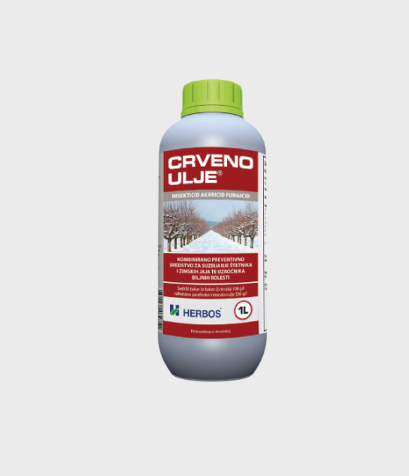 “CRVENO ULJE ” je kombinovani preventivni insekticid i fungicid koji se koristi za zimsku zaštitu višegodišnjih zasada voćaka i vinove loze. Sredstvo je u obliku tekućeg uljnog koncentrata za emulziju.