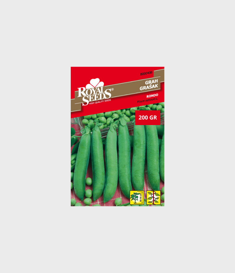 Grašak Rondo od proizvođača Royal Seeds je popularna, srednje rana sorta visokog graška koja se ističe visokim prinosom i ukusnim, naboranim zrnom.