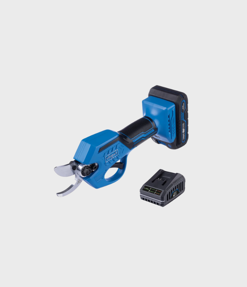 Scheppach aku makaze za orezivanje grana Brushless IXES BC-PRS28-X – SET S 1x2Ah su efikasan alat namijenjen vlasnicima okućnica i voćarima za orezivanje grana do 28 mm debljine. Ovaj set uključuje sve što je potrebno za početak rada: makaze, jednu 2.0 Ah bateriju i punjač.