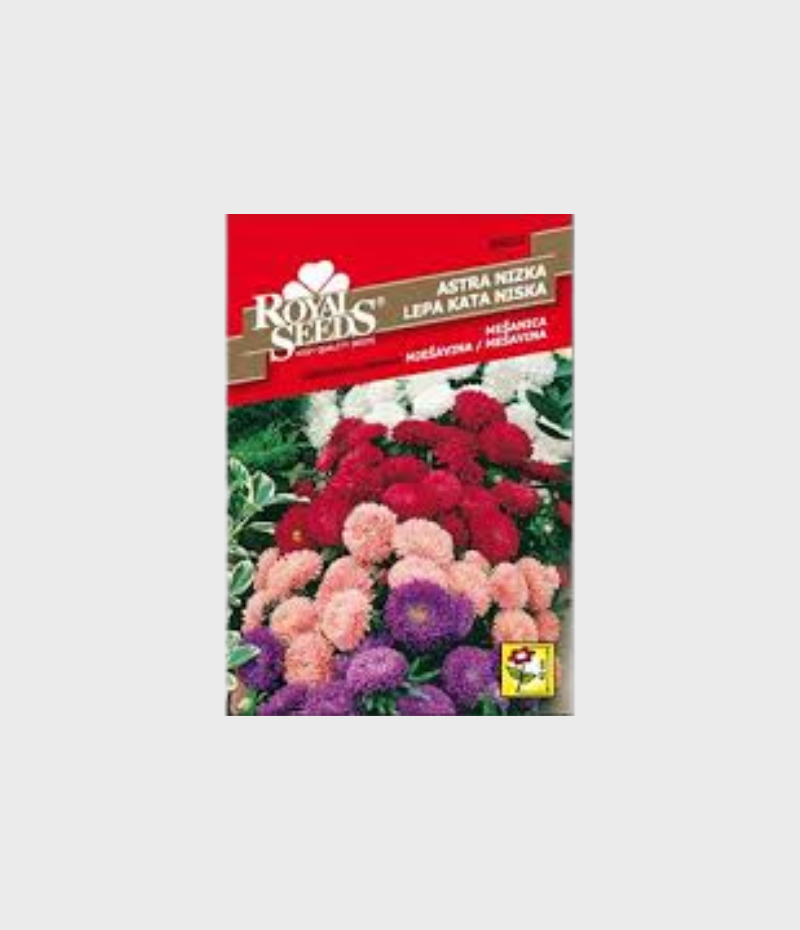 Sjeme astre (Lijepa Kata) Niska Mix od proizvođača Royal Seeds je popularan izbor za uzgoj ukrasnog, jednogodišnjeg cvijeća, cijenjenog zbog svoje raznolikosti boja i kompaktnog rasta, idealnog za obrube i saksije.