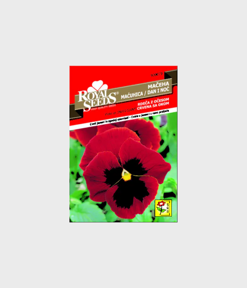 Sjeme maćuhice (Viola tricolor hortensis) crvene boje od proizvođača Royal Seeds je popularan izbor za uzgoj ukrasnog, dvogodišnjeg cvijeća, cijenjenog zbog svoje upečatljive crvene boje i mogućnosti cvjetanja u hladnijim mjesecima.