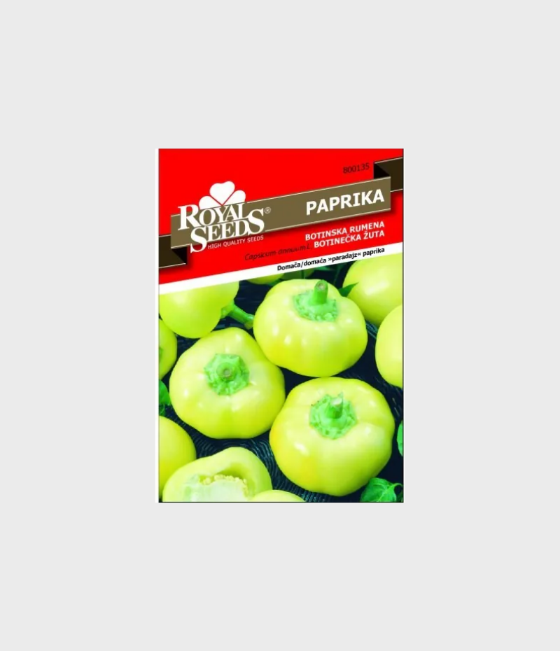 Sjeme paprike Domaća Paradajz Paprika od proizvođača Royal Seeds je popularna, tradicionalna sorta paprike, cijenjena zbog svog specifičnog, okruglog (paradajzastog) oblika, debelog mesa i svestranosti u upotrebi.